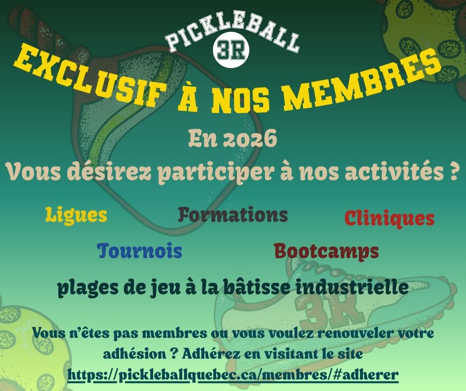L’Association Pickleball 3R est fière de souligner l’atteinte du cap des 700 membres en règle pour l’année 2025. C’est une marque de confiance appréciable qui témoigne de la vitalité du pickleball à Trois-Rivières. Merci à tous les bénévoles qui insufflent cette vitalité à notre association.